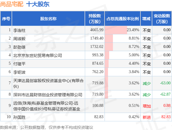 根据尚品宅配2023年中报公布的十大股东详情如下: