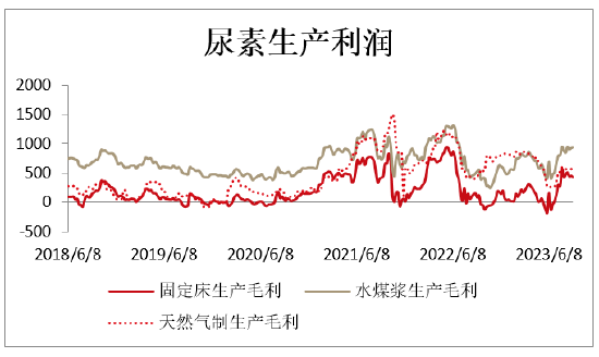 经过6-8月内需以及出口的爆发,目前国内显性库存低位。以累计同比来看,产量维持同比4%增幅相对容易,而出口由于受到政策收紧影响,预计8-12月同比下降超过20%,即使如此环比较出口放开后的6、7月月均值仍有增加,这导致8-12月国内需求同比要增加8%以上,才能实现12月末库存与2022年同期持平,限于6、7月同比超过这一水平,存在实现可能,但尿素生产利润预计下降。此外生产利润回落后,出口政策存在再度放开可能,国内出现类似4、5月过剩可能性不大。如需求或出口不及预期,利润会下修,在未出现过剩预期前,高成本工艺是价格强支撑。