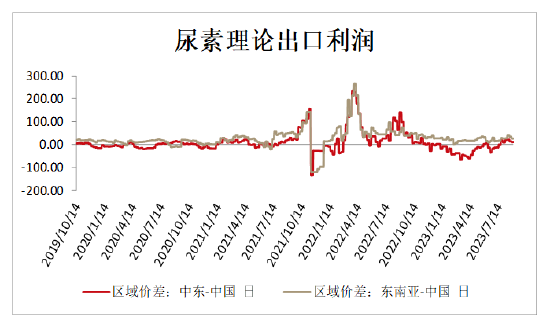 印度每年3季度末,4季度是主要进口及招标时点。因印度复兴计划,2022年内投产381万吨产能,2022年6月上旬印度化肥部部长曾表示,12月前不需要进口化肥,而实际上印度下半年招标超过400万吨,但随着时间推移,2023年招标量预计下降,1季度仅2月下旬印度IPL发布尿素进口招标,3月初开标,开标价格较同期内盘低超20%。5月末RCF发布招标,6月中下旬截标,开标价格较发布招标时下降10%。7月25日IPL再度发布招标,8月上旬开标,东海岸最低报价CFR396美元/吨,最终招标175.9万吨,其中中国中标超100万吨。9月初RCF再度发布新招标,年底或仍有1-2次招标。由于国内进入秋季肥时段,对印度的大量出口影响国内供应,主要出口商及协会发文表态优先保供国内,预计后续印标对国内影响有限。截至9月初,中国与东南亚地区价差在27.5美金/吨,中国与中东地区价差在10美金/吨。