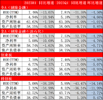 图表 5:2023H1 A股盈利能力概览