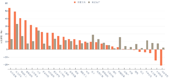 图表 10:申万一级行业2023H1在建工程与固定资产同比增速