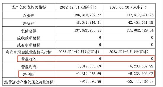 不过,北京绿钒自成立以来尚未产生营收,并处于亏损状态,2022年、2023年上半年的营收均为“0”,净利润分别为-131.21万元、-623.33万元。