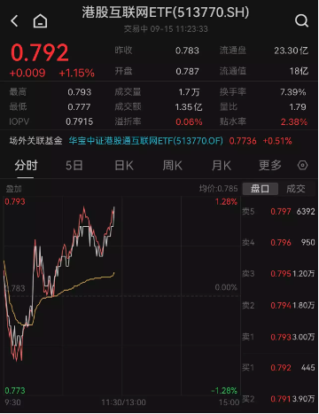 在权重龙头带动下,港股互联网ETF(513770)场内价格震荡拉升,截至发文涨幅1.15%,成交额1.35亿元。