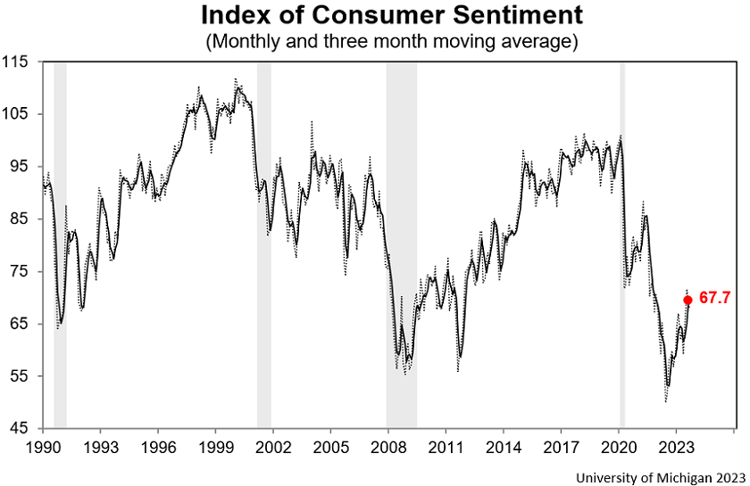 不过,密歇根大学的报告不全是好消息。数据显示,9月消费者信心指数初值降至67.7,低于上月的69.5和市场预期的69.1。报告写到,消费者越来越多地提到食品和汽油价格,以及他们生活水平的下降趋势。