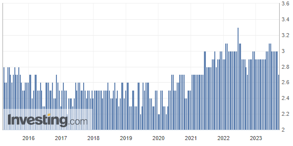 密歇根大学的数据显示,9月消费者预期指数初值录得66.3,高于市场预期的66和8月的65.5。Hsu补充称,到目前为止,很少有消费者提到联邦政府可能关门危机,“如果政府关闭,消费者对经济的看法可能会下降。”
