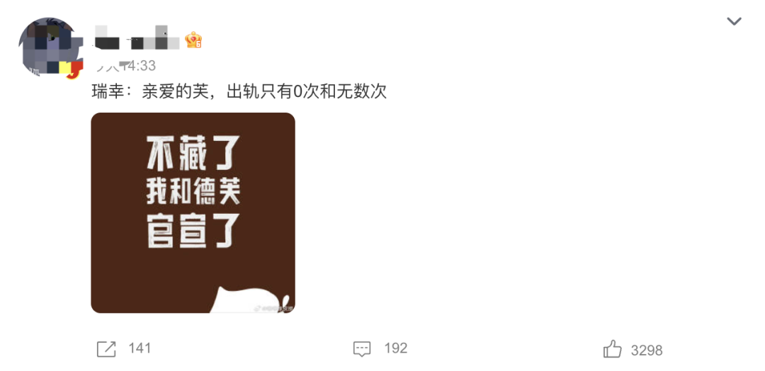 在茅台酒心巧克力火爆开卖之后,词条“亲爱的芙出轨只有0次和无数次”出现在某社交平台热搜上。网友频频抛梗,“瑞幸:亲爱的芙,出轨只有0次和无数次”“茅台:以前车马很慢一生只能爱一个人现在5G很快半小时爱六十个”“我以为是瑞幸嫁入豪门,没想到是茅台开始纳妃,还没坐热乎呢,新人进门了”。