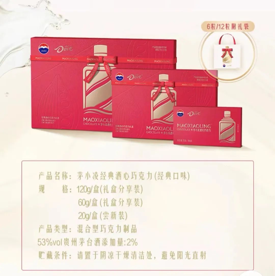 继酱香拿铁引爆市场之后,9月16日下午15点30分,茅台与德芙巧克力联名推出的“茅小凌”酒心巧克力在部分茅台冰淇淋店、天猫德芙旗舰店、天猫茅台冰淇淋旗舰店、天猫超市、抖音茅台冰淇淋旗舰店正式上线发售,再次引发市场关注。