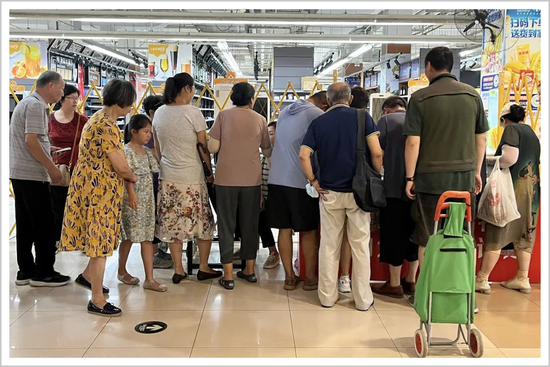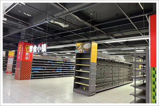 店门口的购物车开始乱堆,生鲜区和熟食区的店家也越来越少,货架上的商品被顾客取走后,补货越来越慢,在收银台、服务台和各分区,一些老顾客熟悉的“蓝马甲”也不见了。