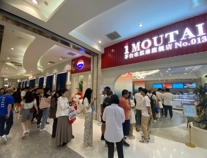 当天下午,中国证券报·中证金牛座记者在北京朝阳大悦城茅台冰淇淋旗舰店看到,在距离开售还有近半小时的时候,购买茅小凌酒心巧克力的顾客队伍已经排到了店门外。