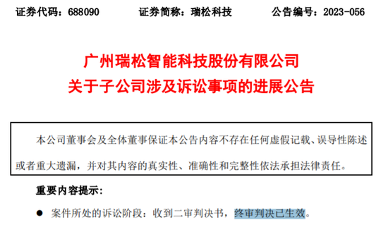 2023年7月,法院二审判决宝能集团及姚振华连带偿付2984万元给广州瑞北,并支付逾期付款损失,但瑞松科技截至2023年9月6日未收到该笔款项。