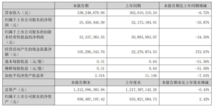 业绩方面,2023年上半年,联合精密营收净利双下滑。公司上半年营业收入为3.38亿元,同比下降6.72%;归属于上市公司股东的净利润约3346万元,同比减少35.87%;基本每股收益0.31元,同比减少51.56%。