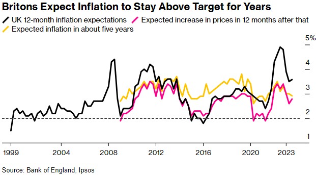以英国央行行长Bailey为首的政策制定者正在密切关注通胀预期,以确定他们还需要提高多少利率,以防止物价螺旋上升。
