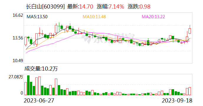 旅游出行板块18日盘中发力拉升,截至发稿,长白山涨近7%,盘中一度触及涨停;全聚德、中国中免涨逾5%,君亭酒店、锦江酒店涨约4%,首旅酒店、金陵饭店、三特索道(维权)、曲江文旅等走高。