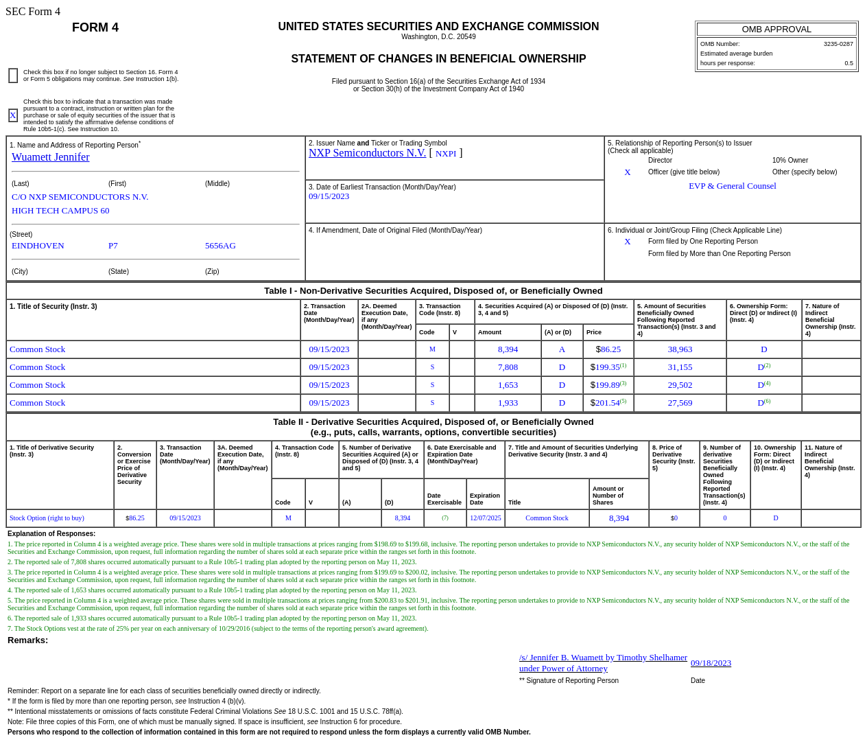 9月19日报道,根据美国证券交易委员会(SEC)9月18日披露的文件,$恩智浦(NXPI.US)$执行副总裁兼总法律顾问Wuamett Jennifer于9月15日以每股平均价199.8美元售出1.14万股普通股股份,价值约为227.65万美元。