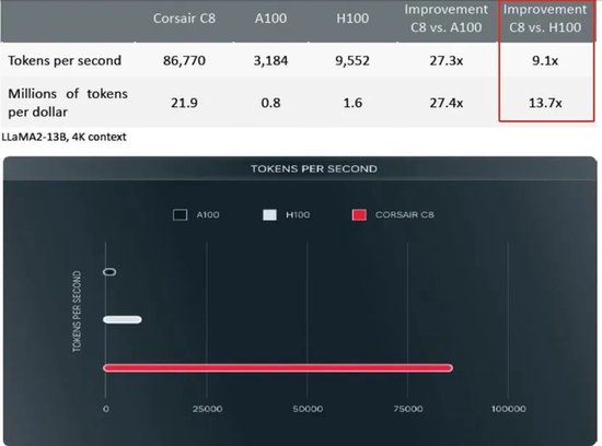 实测中Corsair C8吞吐量超越Nvidia H100的9倍