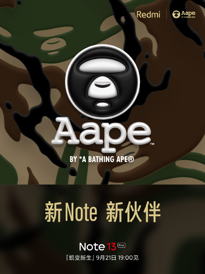 IT之家 9 月 20 日消息,Redmi 今日宣布与潮流品牌 AAPE 携手打造的联名新品,9 月 21 日(明日)19:00 正式发布。