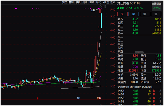 比如龙江交通今天盘中跌停,此前该股连续涨停。