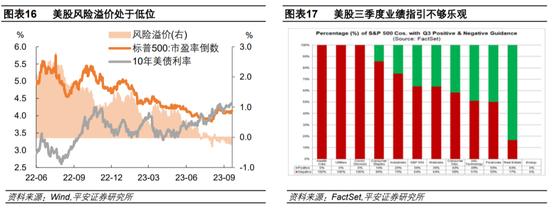 美股或有阶段调整压力。一是,美债利率仍维持高位。二是,风险偏好过高。当前标普500指数的风险溢价水平(市盈率倒数-10年美债利率)已经转负,暗示市场风险偏好极高,孕育阶段调整压力。尤其是科技股前期上涨较快,投资热情存在阶段回落风险。三是,美国企业三季度盈利或不够乐观。据Factset数据,截至9月15日当周,在已经发布业绩指引的标普500企业中,约三分之二都偏消极。