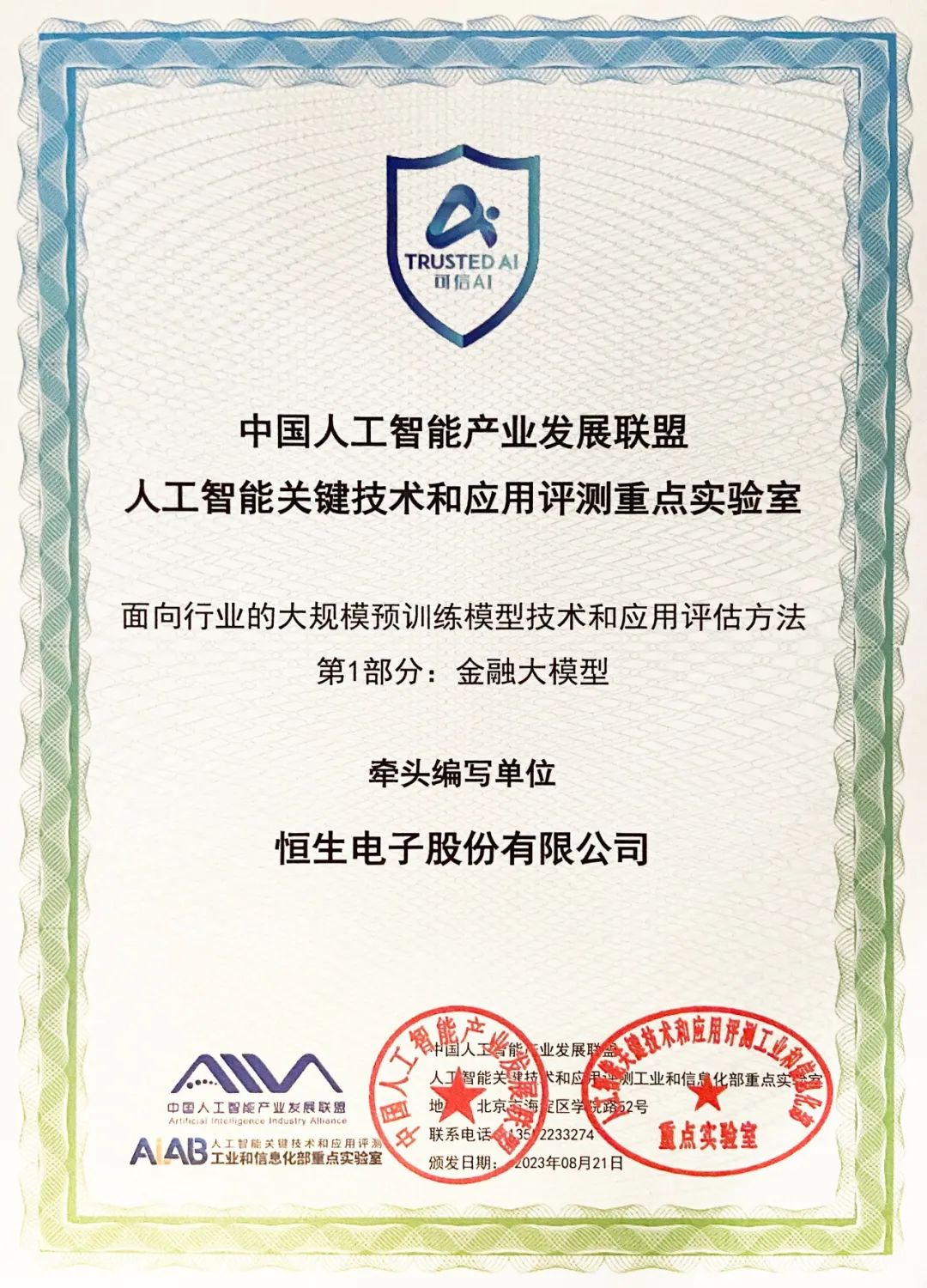 9月18日,恒生电子作为牵头编写单位,联合中国信通院正式发布国内首个金融行业大模型标准《面向行业的大规模预训练模型技术和应用评估方法 第1部分:金融大模型》。