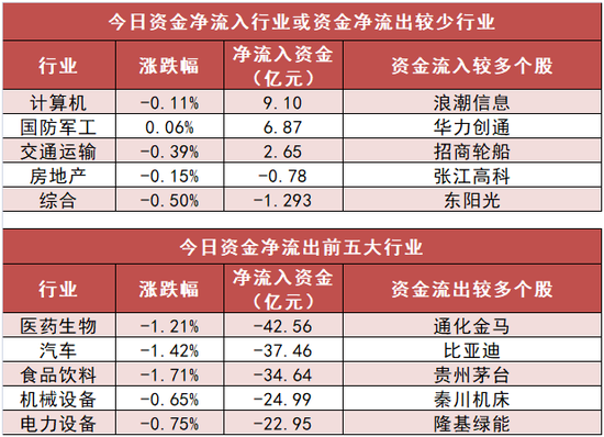3、计算机行业净流入9.1亿元居首