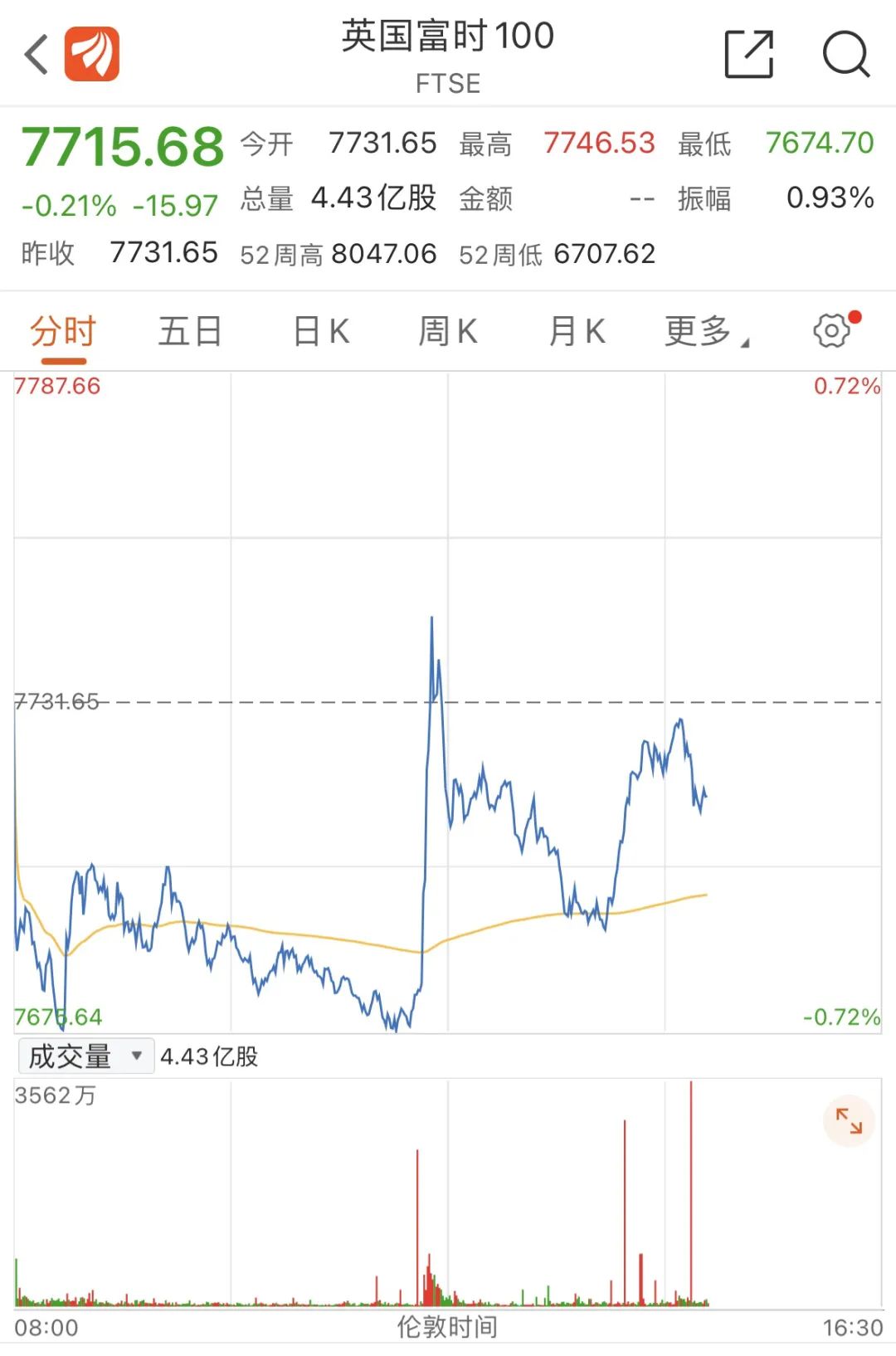 英国富时100指数短线小幅走高,跌幅从0.6%收窄至0.2%。