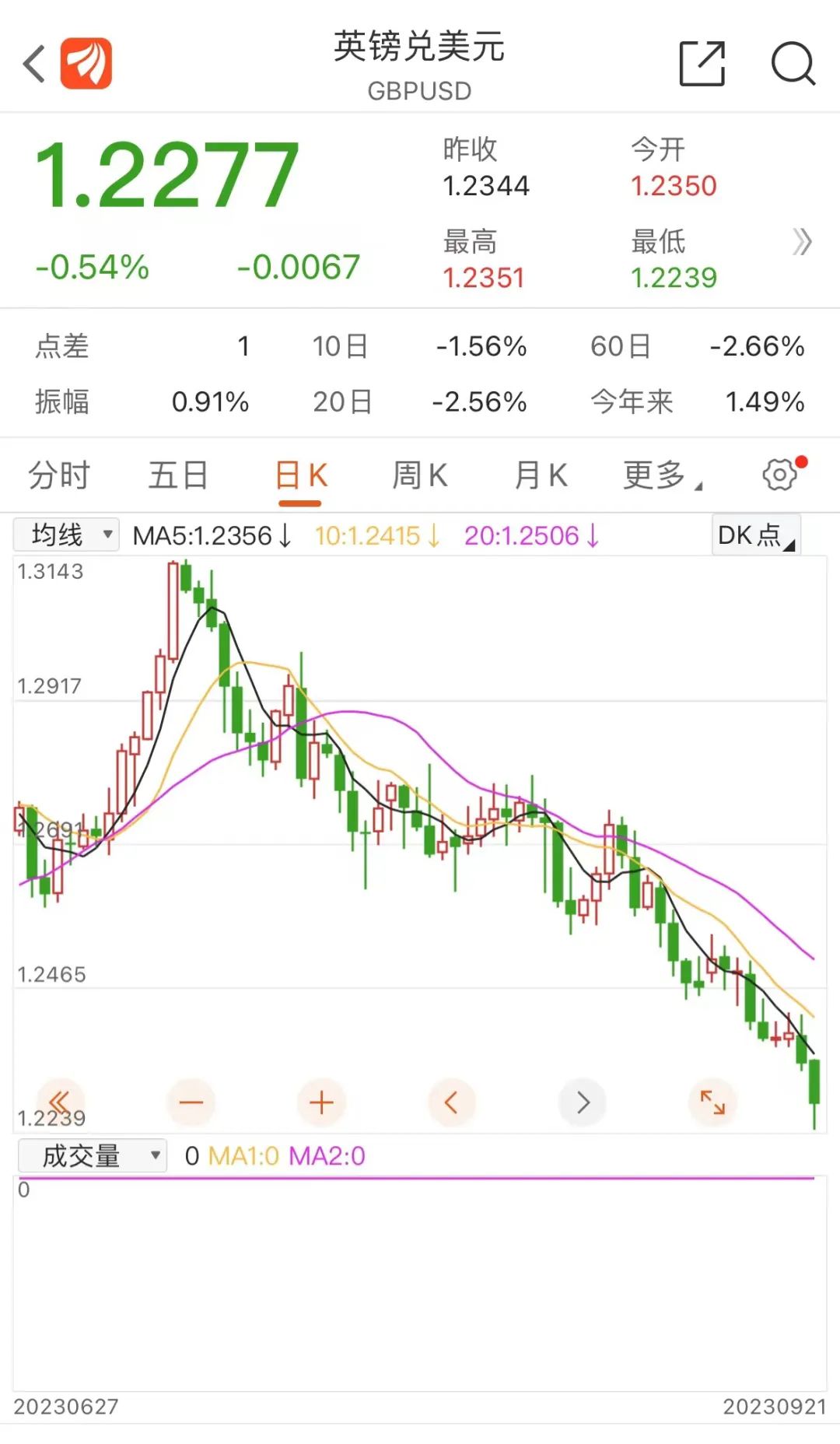 在英国央行公布利率决策前,英镑已经是本月主要货币中表现最差的货币。英国暂停加息后,英镑兑美元跌至6个月低位。