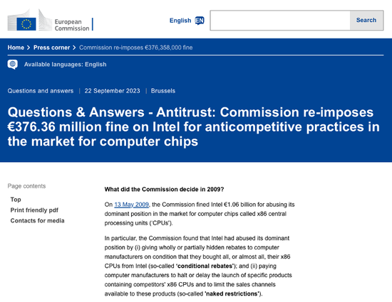 从公告内容看,英特尔与欧盟的这场纠葛已经持续了十几年。