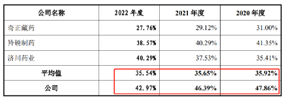 从招股书和审核问询来看,远高于同行的学术推广费占比依然是监管重点关注问题之一,报告期内(2020年至2022年)百神药业的“市场及学术推广费”占营收比重分别为47.86%、46.39%、和42.97%,高出可比公司平均值7到12个百分点,其中大头又是“学术推广会议费”。