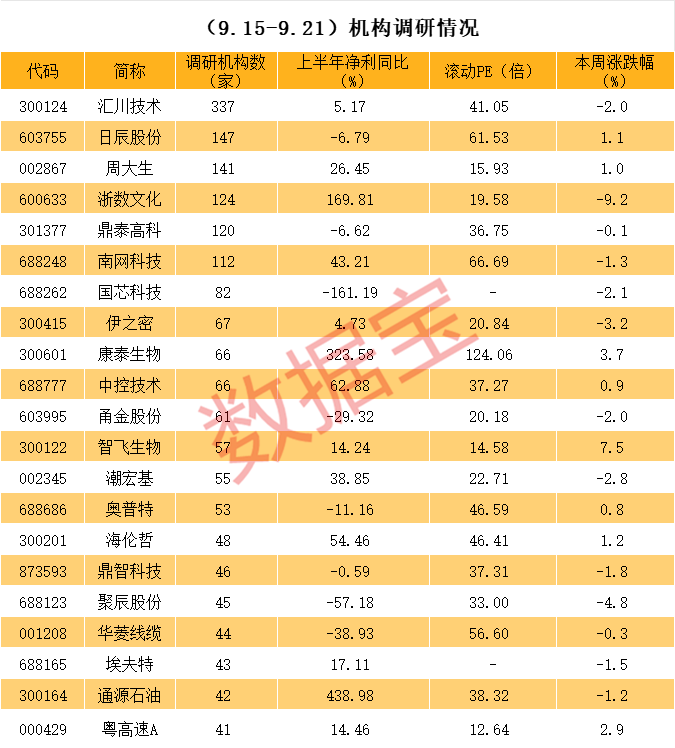 近一周机构调研个股数量有730多只,汇川技术成为调研机构数量最多的股票。