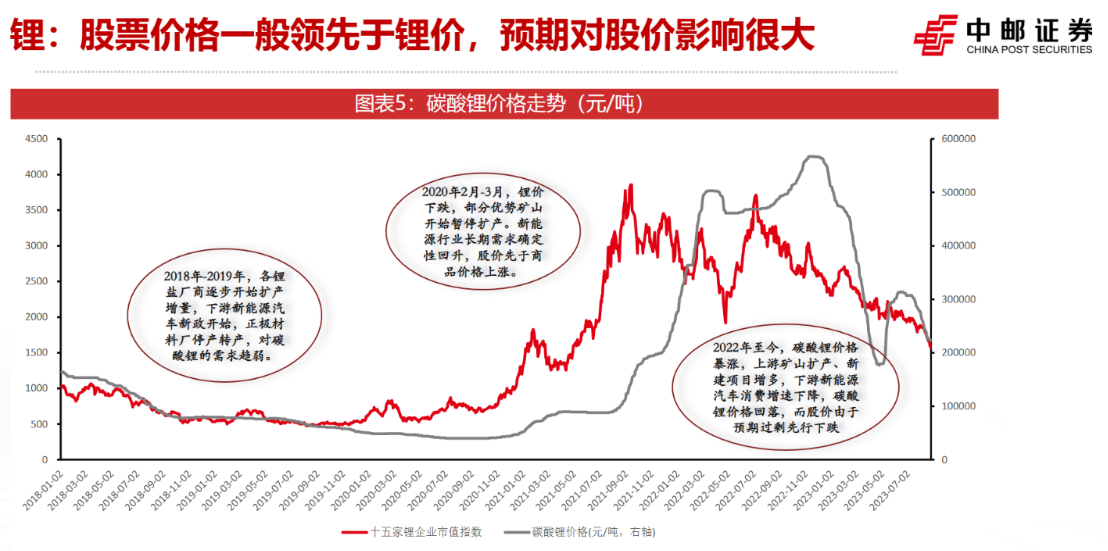 ▌碳酸锂期货上市两个月累跌超三成 A股“锂矿双雄”业绩下滑年内股价腰斩 券商研报认为股票价格一半领先于锂价