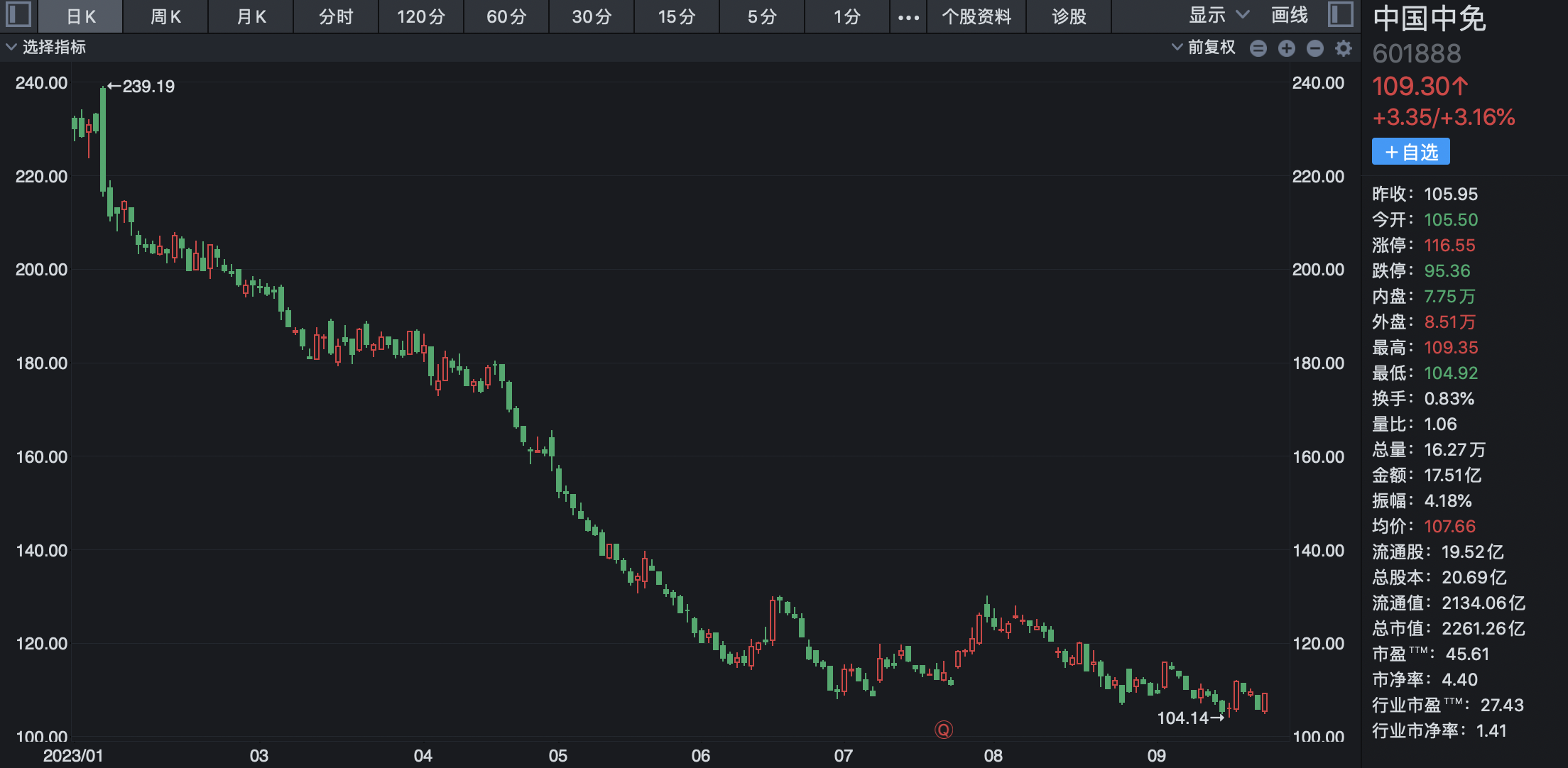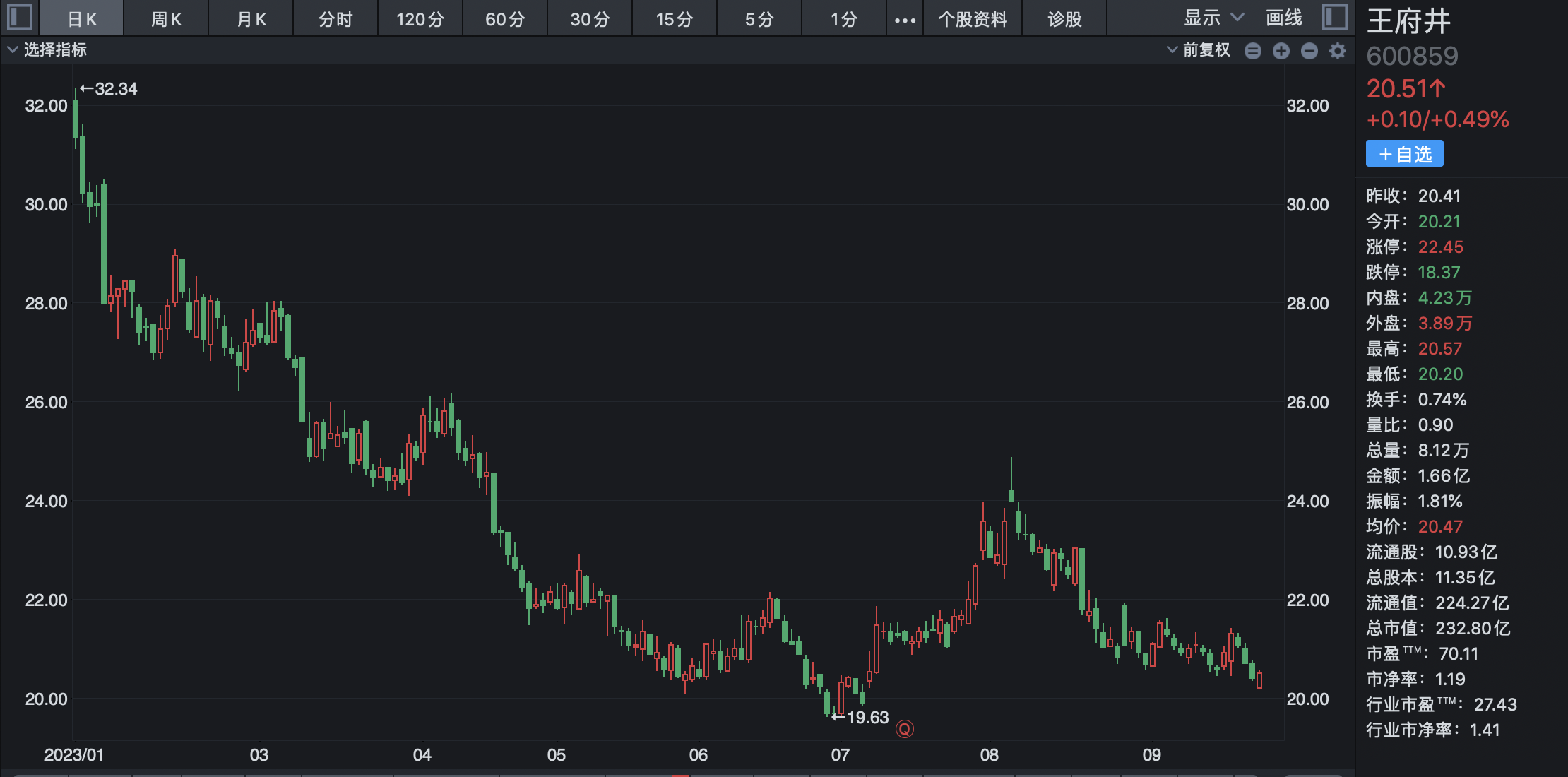 除了景区和景点类企业,出境游的复苏同样带给免税龙头复苏机遇,但与网红地相似均面临着客流转化成消费力的压力。“免税一哥”中国中免上半年净利润38.64亿元,同比仍稍降1.87%。公司股价年内累计最大跌幅腰斩。此外,免税“新手”王府井股价年内累计最大跌幅亦接近五成。