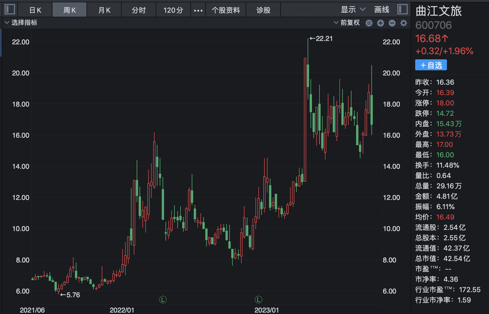 但值得一提的是,西安旅游和西安饮食股价表现却堪比旅游股的“领头羊”,在去年10月初至今年上半年期间,两家公司股价累计最大涨幅分别为200%和484%。不过,股价过山车走势亦不可避免,高位迄今累计最大跌幅分别超三成和五成。