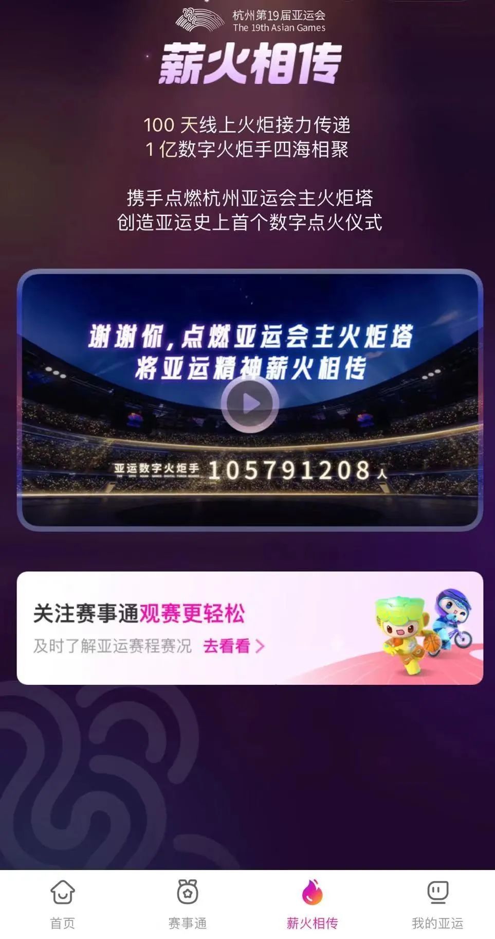 据悉,过去3个月来,共有来自全球130多个国家和地区的网民,通过“智能亚运一站通”成为亚运数字火炬手,参与线上火炬传递。其中年龄最大的98岁,年龄最小的12岁,20岁至39岁的中青年人群占64%。这也是亚运历史上第一次实现数实联合点燃火炬。