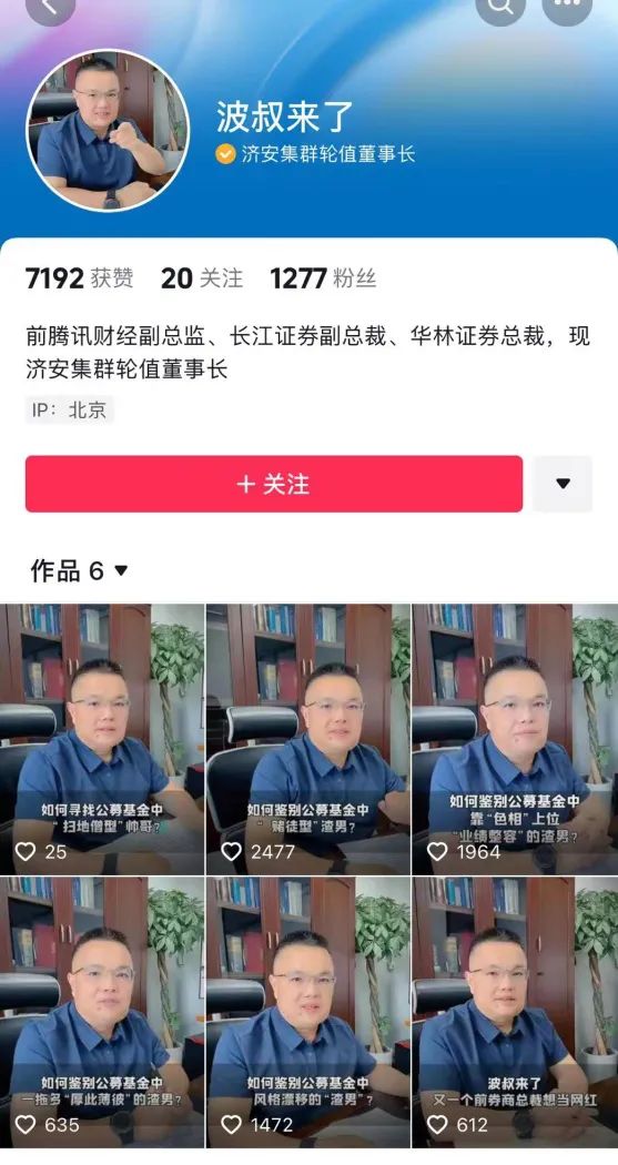 近日,一个叫“波叔来了”的账号在抖音上发布视频,并且自带话题为“又一个前券商总裁想当网红”,波叔正是华林证券前总裁韦洪波。