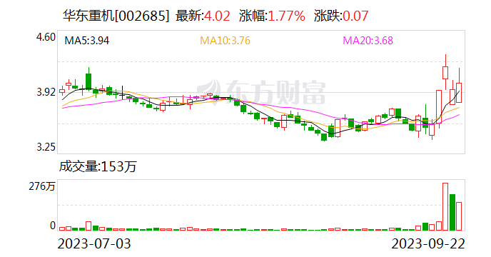 华东重机(002685)9月24日晚间公告,公司收到深圳联合产权交易所通知,公开挂牌公示期的10个工作日内,未能征集到符合条件的意向受让方。公司拟将挂牌价格在首次挂牌底价9.37亿元的基础上下调15%,即以7.97亿元的价格,重新公开挂牌转让润星科技100%股权。截至目前,公司5%以上股东周文元已告知公司其有意向在条件合适时参与收购润星科技100%股权。