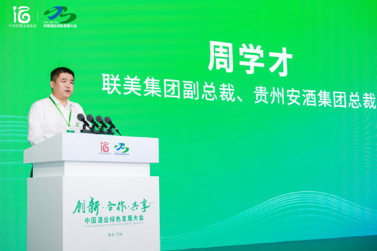 周学才以“绘制绿色锦绣彰显头部担当”为主题分享了安酒的绿色发展实践。他表示,贵州安酒将以绿色为基础,构筑起安酒品质、品牌到市场的全面绿色发展体系。为习水产区发展贡献力量,致力于将习水打造成为千亿产区的绿色标杆之一。
