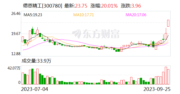 机器人概念25日盘中强势拉升,截至发稿,德恩精工“20cm”涨停,禾川科技涨超12%,远东传动、恒为科技、科力尔、长青科技、华纬科技、奥普光电等涨停。