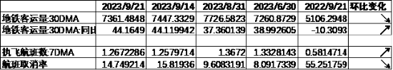 出行数据方面,地铁客运量维持高位,同时执飞航班数据小幅回落后开始回升。