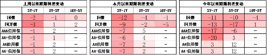 同业存单方面,上周同业存单发行利率大体上行,其中发行规模最多的3M股份银行上行6BP,1Y国有银行下行3BP。