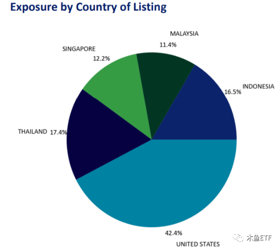 以上是该ETF的权重成分股。对,这里只有9只,但新交所非要说这是10只。9家公司里,一家在泰国上市,一家在印尼上市,两家在新加坡,还有五家在美国上市。可能是以后我们能买到的地域最多元化的ETF了。