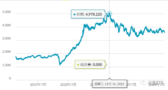 而过去五年的高点,是2021年11月,也是美股的高点,之后也受到明显的影响而震荡。可以看到,在上一波利率宽松周期,这个指数的涨幅差不过是4倍,而相比之下耐斯达克不过2倍多!