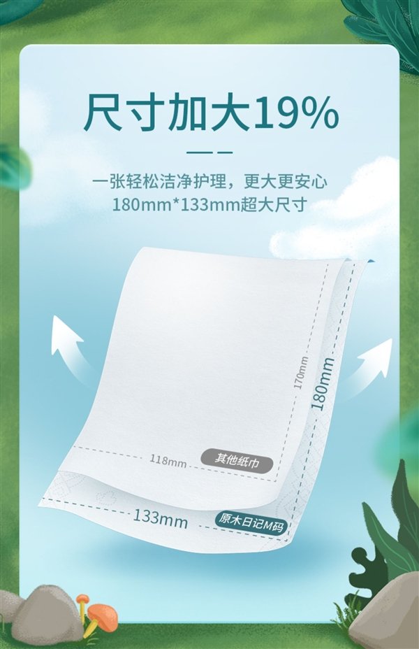 3层*100抽/包,尺寸为180*133mm,自有林场,100% 原生木浆,尺寸加大19%。