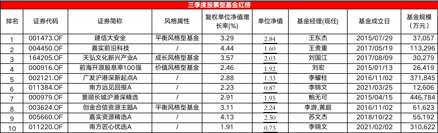 下表为综合得分最高的10只股票型基金: