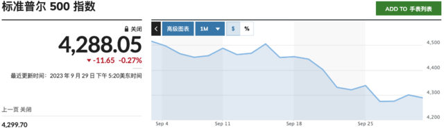 债券收益率上升同时给股市带来问题,导致标准普尔500SPX指数在9月份也表现低迷。