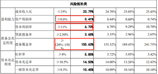 报告期内,公司核心负债比例、资产利润率、资本利润率等多项指标未达监管要求,关键指标不良贷款拨备覆盖率勉强过线。