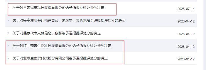 4月11日,陕西嘉禾生物科技股份有限公司(以下简称嘉禾生物)也被给予了通报批评处分,其在去年7月撤回了发行上市申请。嘉禾生物的违规行为包括:未如实披露境外存货存在账实不符、期后销售比例低等情形,未如实准确披露转贷、与供应商的资金往来等事项等。