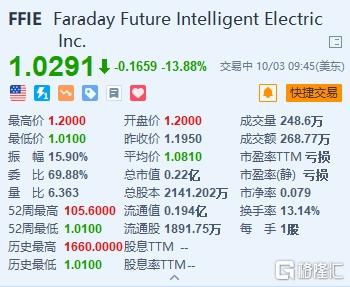 法拉第未来(FFIE.US)跌13.88%,报1.029美元。FF宣布,公司于9月30日继续交付新一台FF 91 2.0 Futurist Alliance,这次交付的对象是FF的长期投资者之一、全球最大的美国万圣节服装全球供应商的创始人。自第二阶段共创交付开始以来,公司已交付了四辆FF 91 2.0 Futurist Alliance。