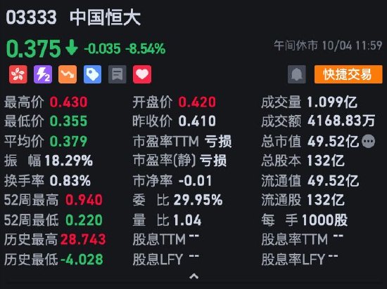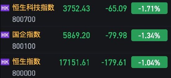 10月4日消息,美股周二显著下滑,美债息持续上扬,不利大市表现,三大指数均录得显著跌幅收市。美元持续强势,美国十年期债息升至4.79厘水平,金价表现受压,油价则反覆向好。港股今日早盘延续跌势,截至午间收盘,恒指跌1.04%,报17151.61点,恒生科技指数跌1.71%,国企指数跌1.34%。盘面上,大型科技股普跌,百度跌近5%,美团跌超3%,快手、阿里巴巴、腾讯跟跌;中国恒大跌超8%,昨日复牌逆市大涨超28%;濠赌股、石油股继续走弱;银行股表现活跃,四大行逆势上涨。