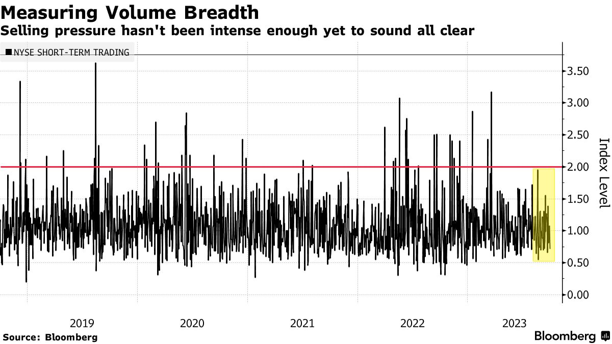 当股价下跌得如此之快、如此之远,以至于几乎没有再下跌的空间时,图表观察家就会认为股票已经超卖。但要确认最近的市场阵痛已经过去,还需要广度和成交量等技术信号的进一步改善。标普500指数中约有35%的股票在200日均线以上交易。奥本海默公司(Oppenheimer)高级分析师Ari Wald表示,通常情况下,这一数字需要降至20%以下,交易者才会认为股市已经投降。