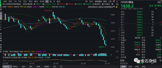 巨大的恐慌之下,黄金价格遭闷杀,已经跌到7个月之前的低位,如今报价1838.2美元,近日10年期美国国债收益率升至4.5%,为2007年以来首次,美元指数也持续上升至年内新高水平,说明市场在定价美联储11月加息的风险。